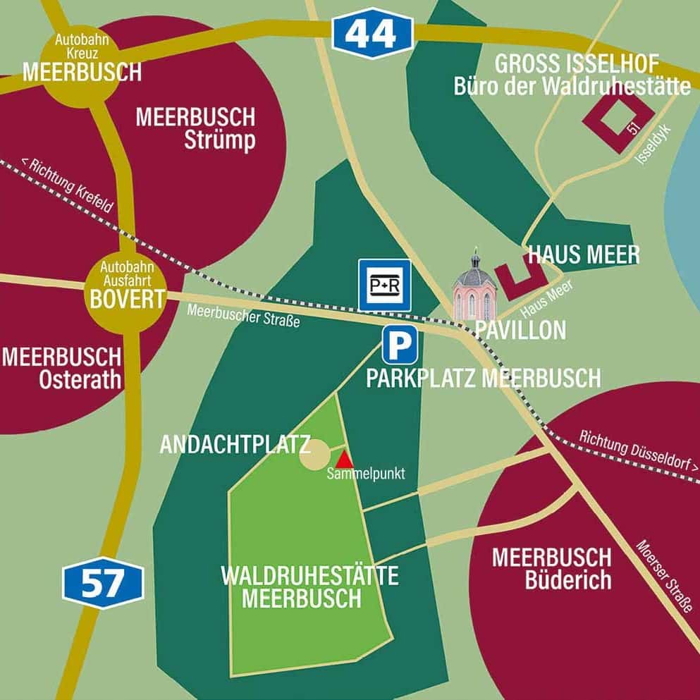 Der Natur-Begräbniswald in Venlo befindet sich nur 8 Kilometer hinter der deutschen Grenze und ist mit dem Auto in ca. 40 Minuten ab Duisburg-Bergheim erreichbar.