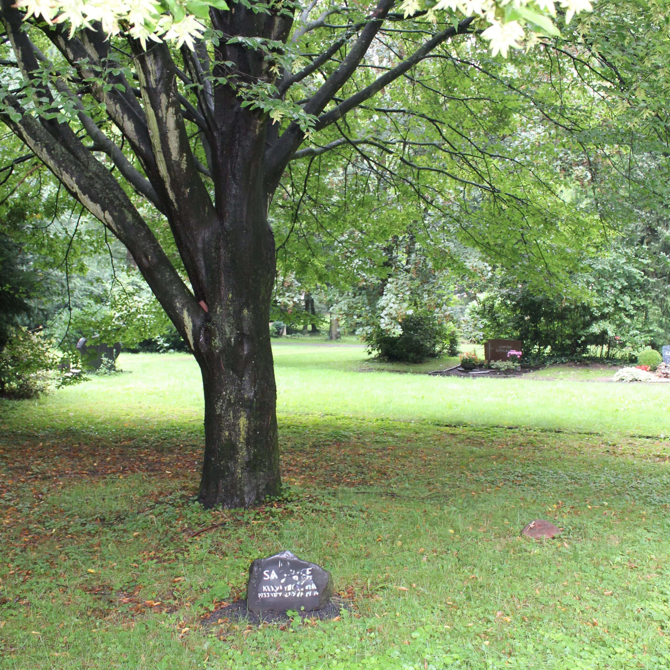 Das Baumgrab kann mit einem kleinen Findling versehen werden, muss aber nicht.