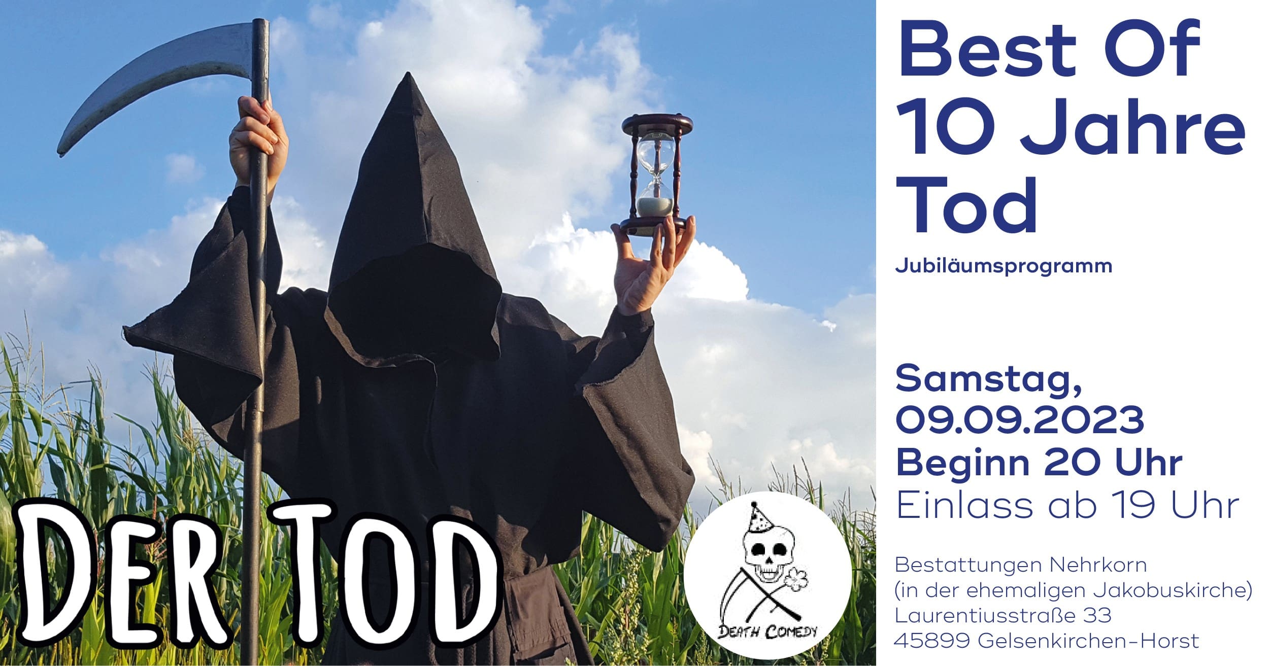Seit über 10 Jahren tourt der Sensenmann persönlich schon durch Deutschland. Viele Kabarett- und Comedy-Preise zieren seine Image-Kampagne, die nun mittlerweile vier abendfüllende Programme umfasst. Diese geballte Gevatterlandsliebe bringt er nun zum ersten Mal in einem einzigen Best-Of-Programm auf die Bühne. Über Radieschen von unten über die Tücken der deutschen Friedhofsverordnung bis hin zum Urlaub im Aufpust-Sarg: Der letzte Reiseführer ist ein Vollprofi.